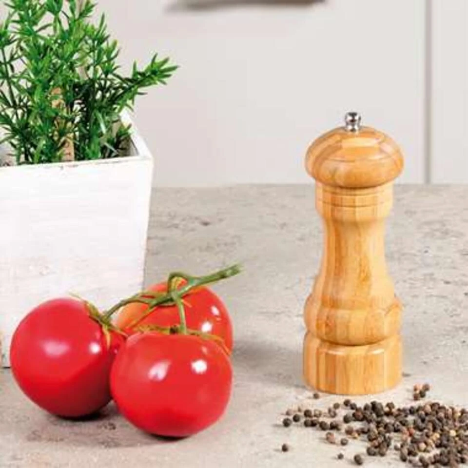 Bamboe houten pepermolen/zoutmolen 16 cm. Bruine peper- of zoutmolen, geschikt voor het malen van diverse kruiden/specerijen, peper en zout. De keramieken molen heeft een verstelbare molen, waardoor u kunt kiezen voor grof of fijn vermalen.