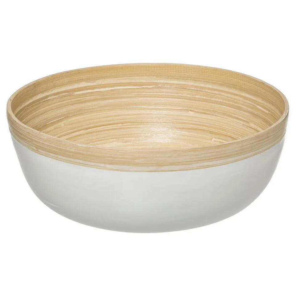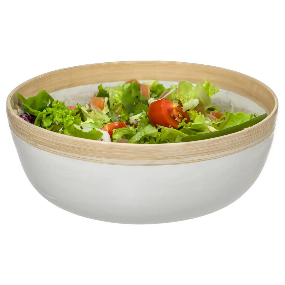 Slakom/voedsel serveer schaal gemaakt van mooi samengesteld bamboe in kleur wit/beige. Formaat: D30 cm en H12 cm. Niet vaatwasser bestendig, handwas is aanbevolen. Ook goed te gebruiken als fruitschaal.