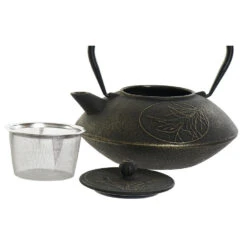 Met de gietijzeren theepot haal je de Japanse sferen in huis. Gietijzer staat bekend om zijn vermogen om warmte vast te houden. De geëmailleerde binnenkant zorgt er voor dat de theepot op smaak blijft en makkelijk schoon te maken is. De theepot is uitermate geschikt is voor het zetten van losse grove thee maar ook thee in theezakjes. Je kan het beste geen zeep gebruiken bij het schoonmaken van de theepot.