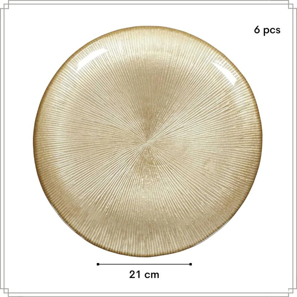 Breng elegantie naar je tafel met de OTIX Ontbijtborden Bordenset voor 6 personen. Deze prachtige set, onderdeel van de AUREA-collectie, bestaat uit dessertborden van 21 cm met een luxe gouden glitterafwerking. Perfect voor ontbijt, desserts of voorgerechten. De borden zijn gemaakt van hoogwaardig glas, waardoor ze niet alleen stijlvol zijn, maar ook vaatwasserbestendig. Een verfijnde toevoeging aan elk diner of feest!