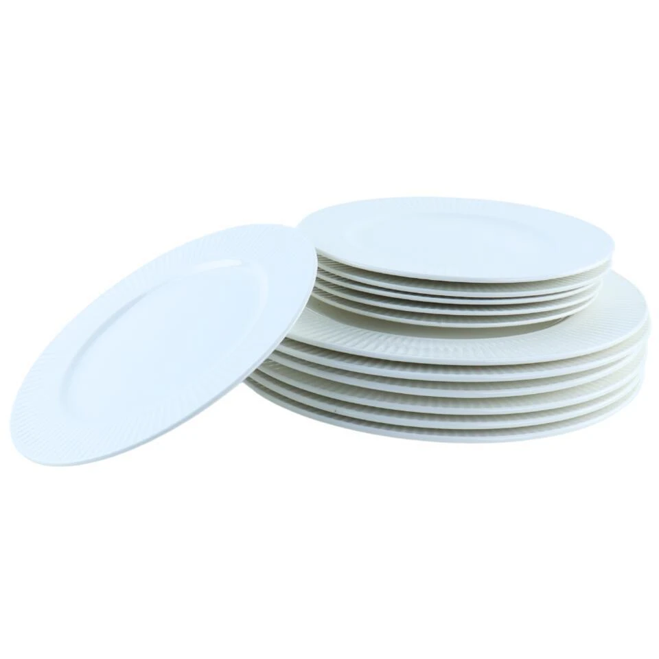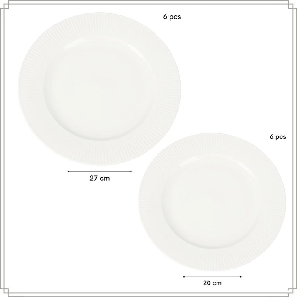 - 12-delige set voor 6 personen (6 ontbijtborden, 6 dinerborden)