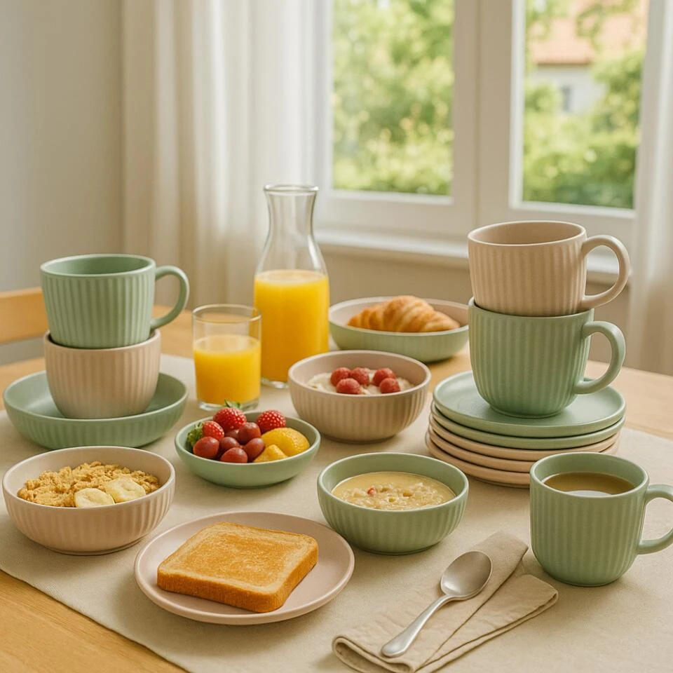 De OTIX AURORA 24-delige serviesset is een complete tafeloplossing voor 6 personen, ontworpen om elk eetmoment bijzonder te maken. Deze set bevat 6 ontbijtborden (22 cm), 6 soepkommen (15cm), 6 dinerborden (27 cm) en 6 Diepe borden (22 cm) – ideaal voor een uitgebreid ontbijt, lunch, diner of gezellige pastamomenten.