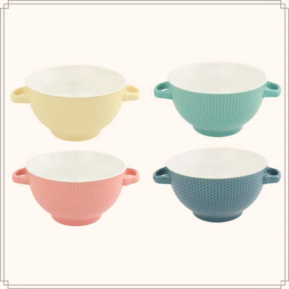 Soepkommen van het merk OTIX. De set bestaat uit 4 soepkommen met verschillende kleuren. Het materiaal van de kommen is aardewerk en de inhoud is 680 ml. De soepkommen zijn geschikt voor in de vaatwasser.