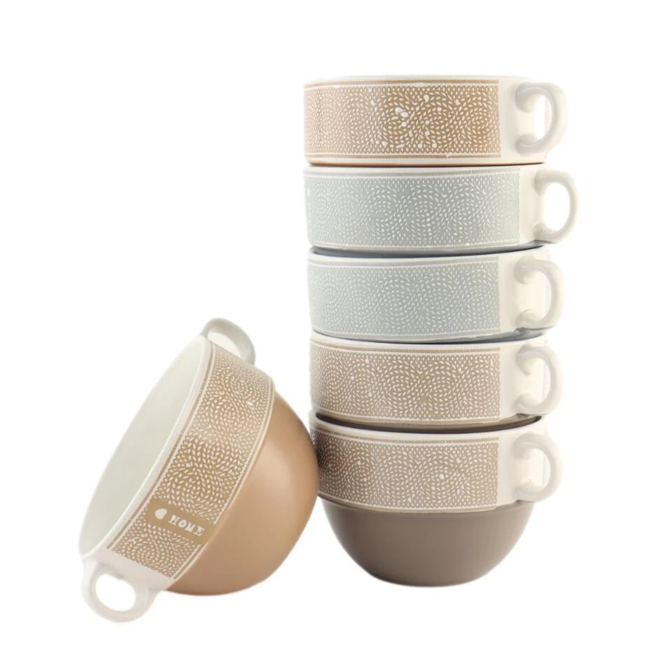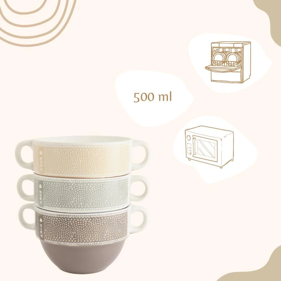 De OTIX Soepkommen met Oor Set van 6 Stuks biedt een elegante en praktische manier om van uw favoriete soep te genieten. Elke kom heeft een inhoud van 500 ml en is gemaakt van hoogwaardig keramiek, wat betekent dat ze stevig zijn. De kommen zijn stapelbaar, waardoor ze gemakkelijk op te bergen zijn en weinig ruimte innemen. Bovendien heeft elk stuk een verschillende kleur, wat zorgt voor een mooie en speelse uitstraling.